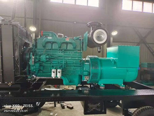用戶簽訂的500KW康明斯移動發電機在車間進行生產
